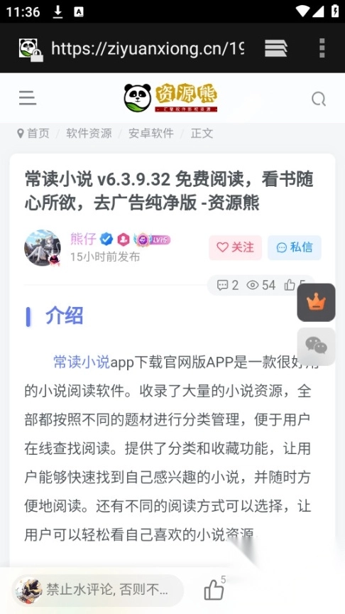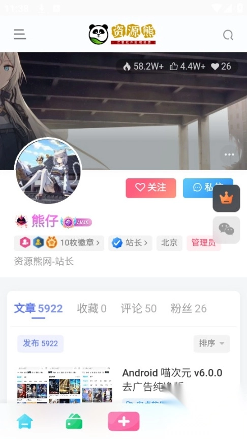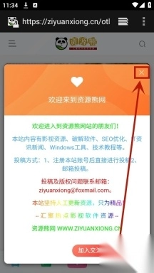 先把资源熊这个应用安装好并启动,等界面加载出来后,找到那个弹窗形式的广告,点击上面的x符号把它关掉。