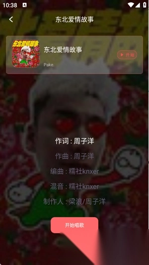用户选择自己想要唱的歌曲,点击开始唱歌