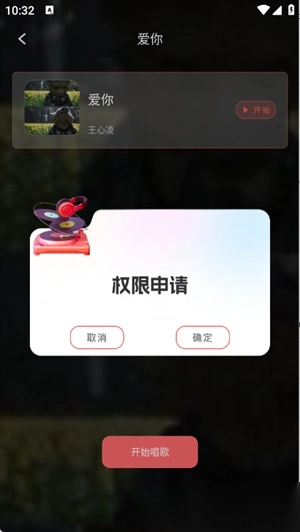 选择想唱的歌曲点击右侧的k歌,点击确定权限申请