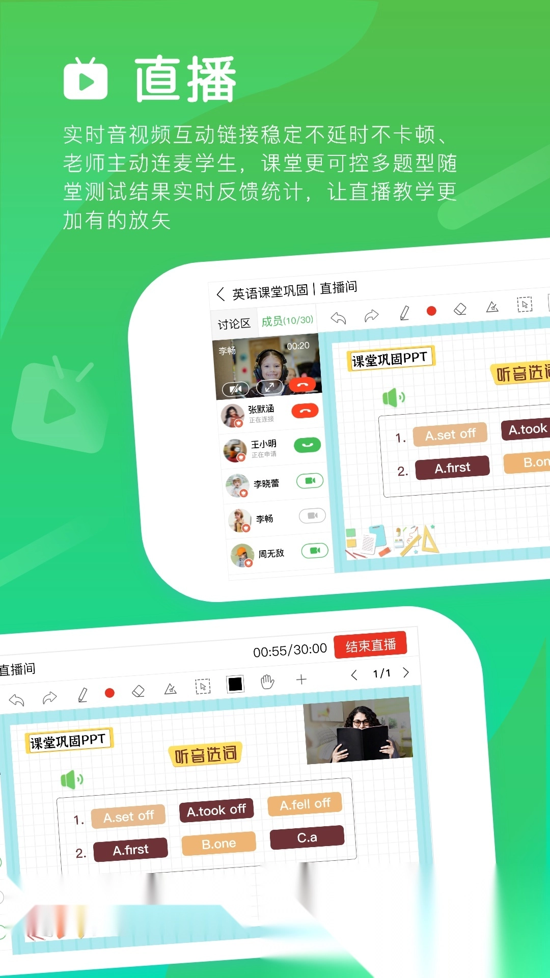 课堂实时录制功能支持你在听课过程中同步记录教学内容,为后续自主复习提供便利,助力提升学习效率。