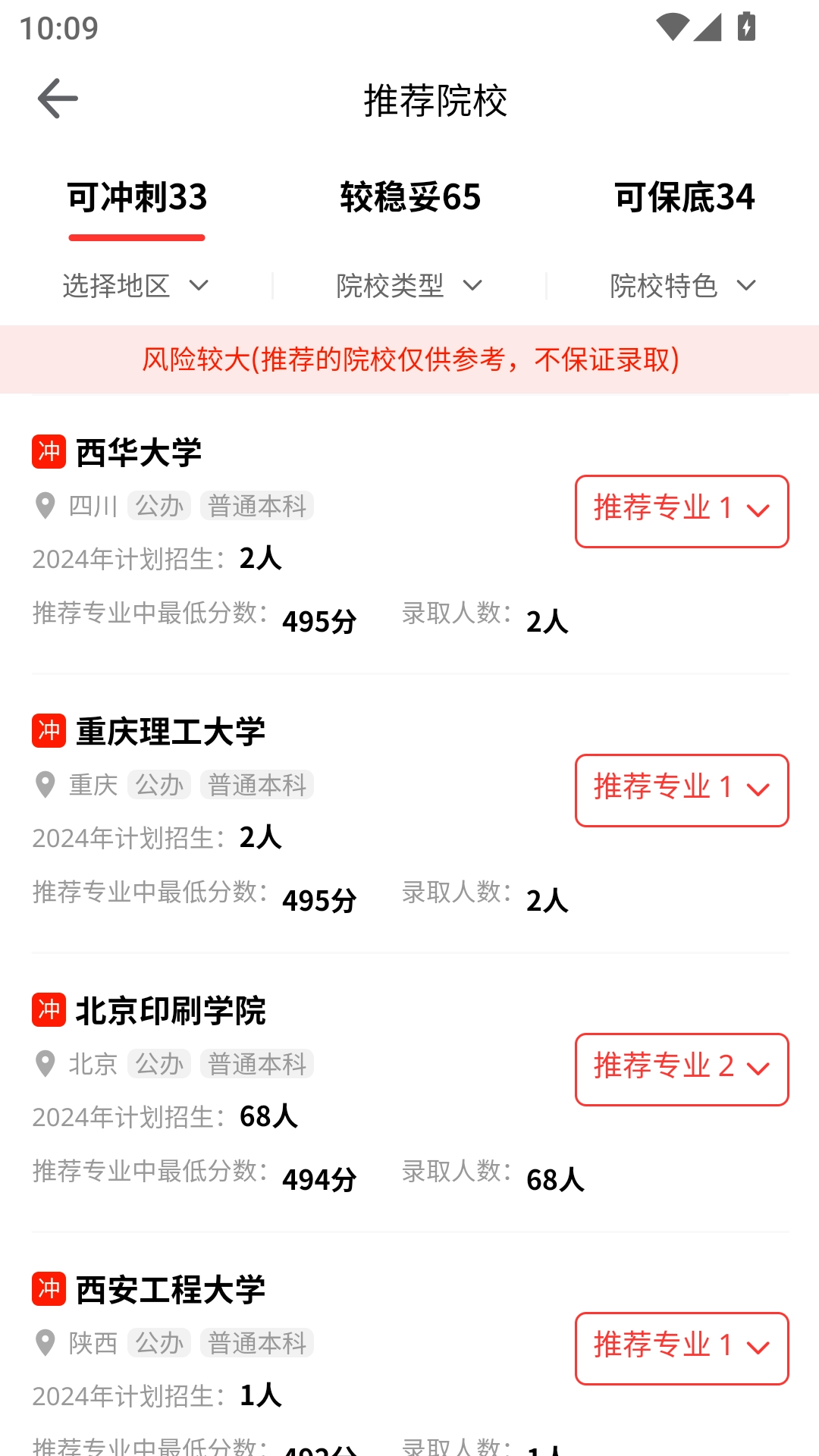 信息填写完成后,就会为用户提供相应的志愿填报方案