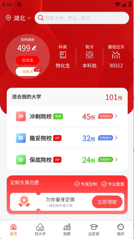 你可以实时查看所需院校的数据信息,App 会为你推荐适合的大学。
