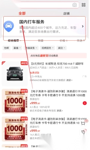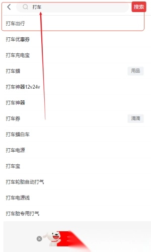 进入京东平台,关键词搜索打车