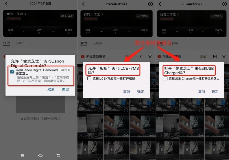 像素芝士请求访问你的相机权限,请点击「好」以完成连接。