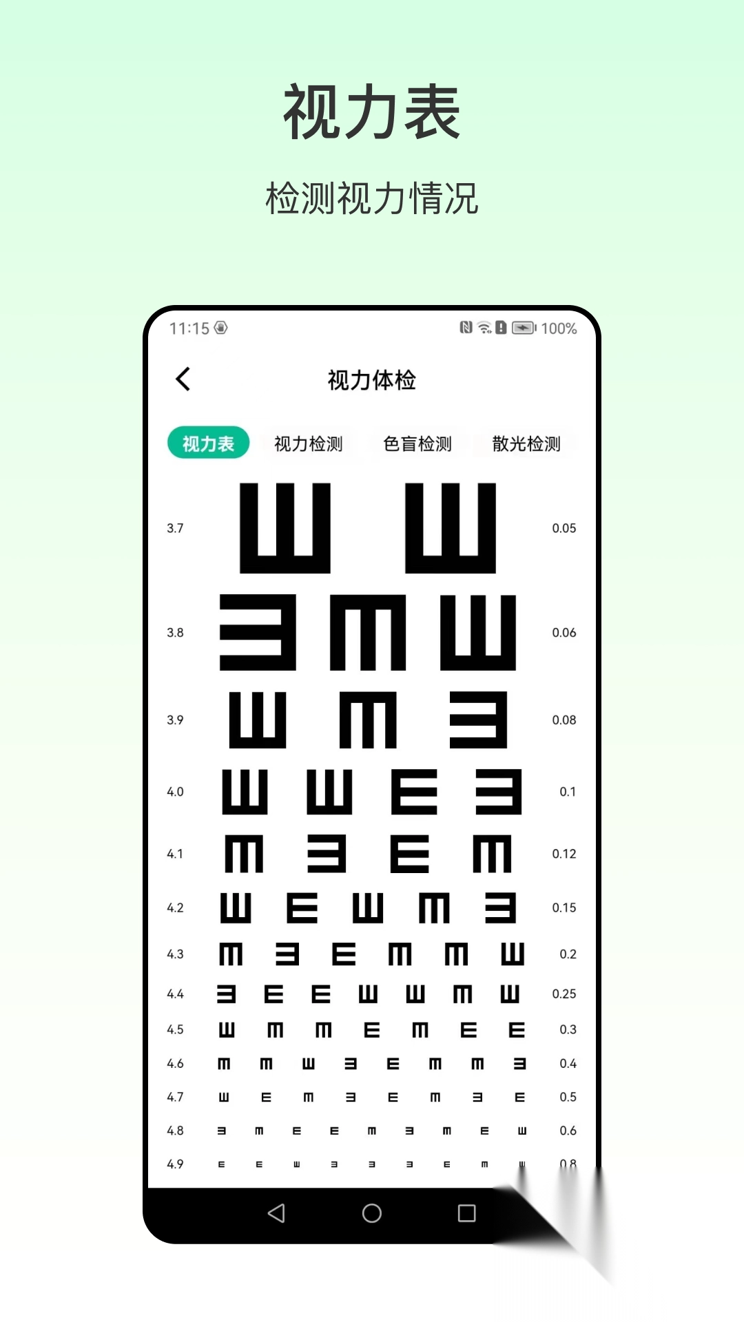 可以实时监测心率,随时了解心率的动态变化;同时具备视力检测、色盲检测以及散光检测的功能。