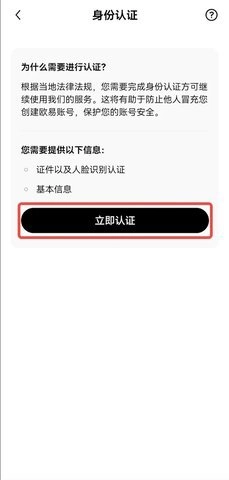 若您尚未完成认证,请点击【立即认证】按钮。在此过程中,您需要上传相关证件照片,例如身份证的正面与反面,同时还需进行人脸识别环节。请您依据页面上的具体提示,完成证件上传以及实人认证的全部操作步骤。