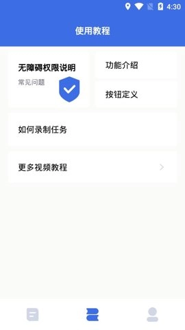 打开自动点击宝后,界面上会呈现出主页、使用教程、我的等不同版块。