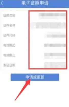 确认提交的材料无误后,找到并点击“申请或更新”按钮,待系统完成审核且结果为通过,即可启用对应的电子凭证。