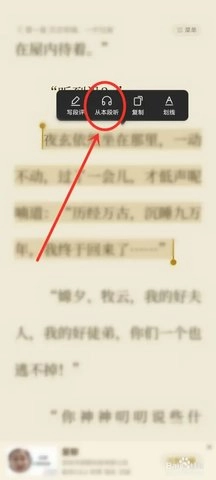 在弹出菜单中,点击“从本段听”图标。