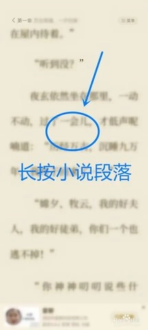 打开全免小说书籍阅读页面,长按书籍段落。