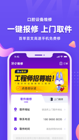牙e学堂除了在线课程外,还开设了覆盖全国的线下课程,课程类型丰富多样,用户可根据需求选择讲师定制专属课程。牙e维修作为便捷的线上报修平台,能让用户轻松完成牙科设备的报修流程。此外,牙e维修会及时推荐厂家新品,方便用户第一时间掌握最新产品动态。针对小型设备维修,牙e维修推出首单首支高速手机免费维修的优惠活动,用户只需一键提交报修申请,就能享受上门取件的贴心服务。