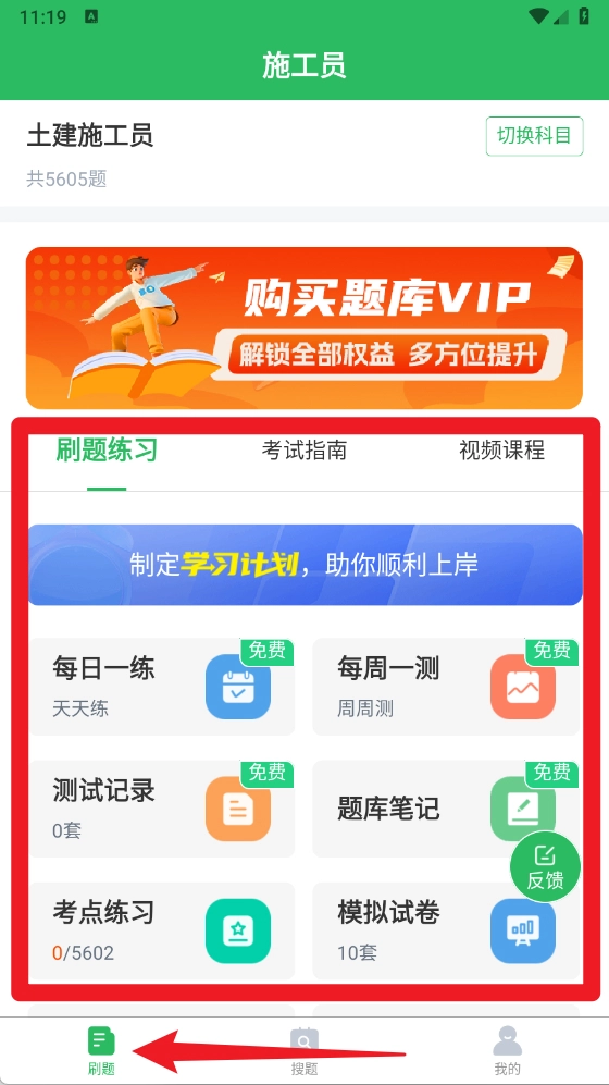 题库设有每日打卡、章节练习、历年真题等不同模块,能够助力用户开展分阶段的系统性学习。