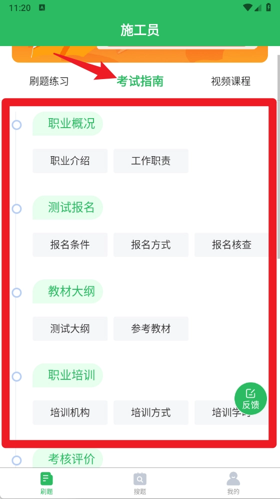 在考试指南板块里,能够查阅职业概况、测试报名要求、教材大纲、职业培训以及考核评价等内容,助力用户全方位知晓考试相关信息。