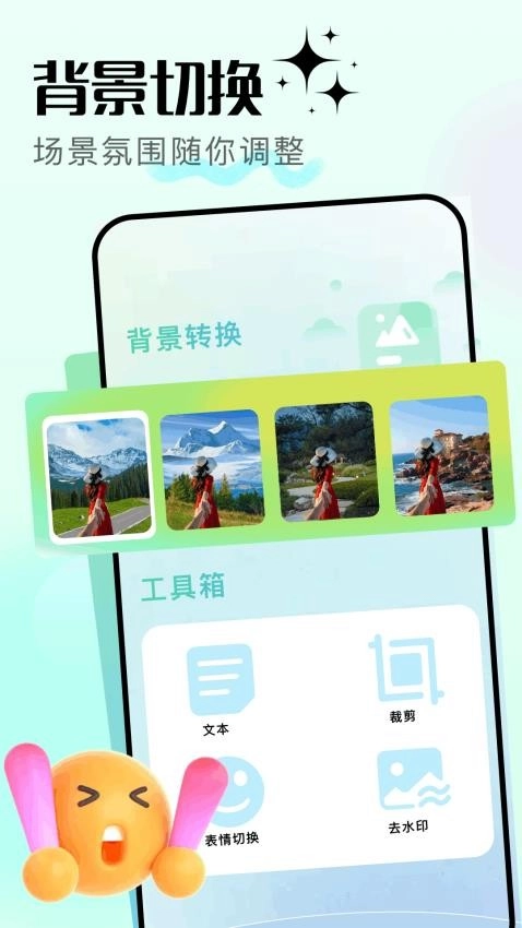 这款软件具备一键替换图片背景的功能,能够智能识别图片中的背景区域并完成替换操作。