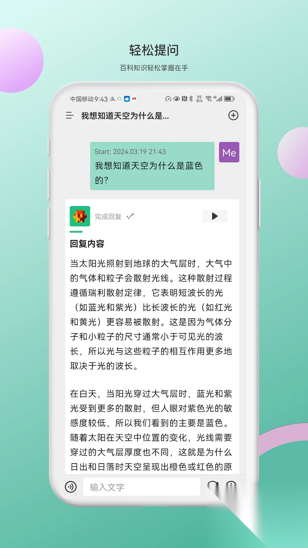 功能强大的AI智能提问工具,能够充当用户的百科全书,让用户可以咨询各类百科相关的问题。