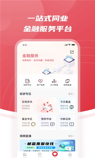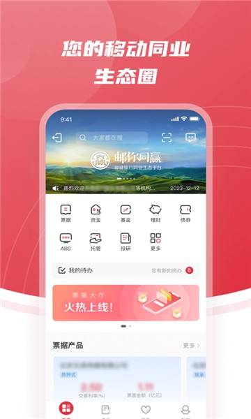 “邮你同赢”同业生态平台一期构建了票据集市、金融产品超市与资金信息聚集地三大业务场景。