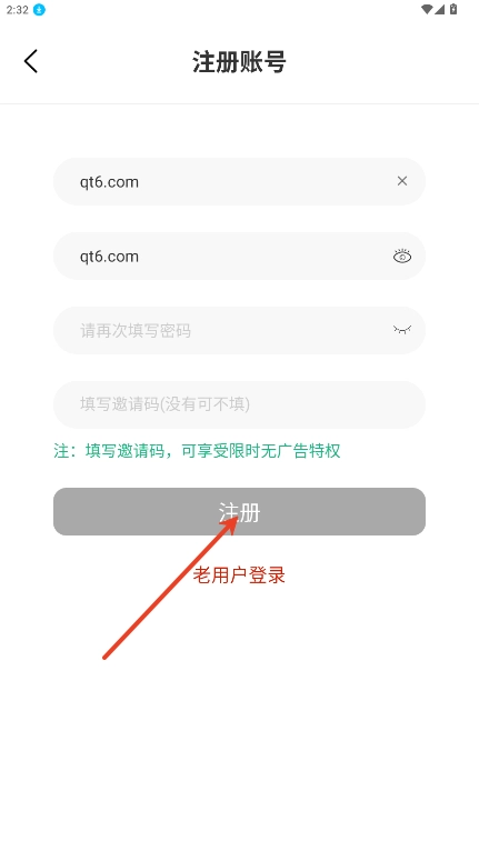输入账号,密码,点击【注册】就成功了。