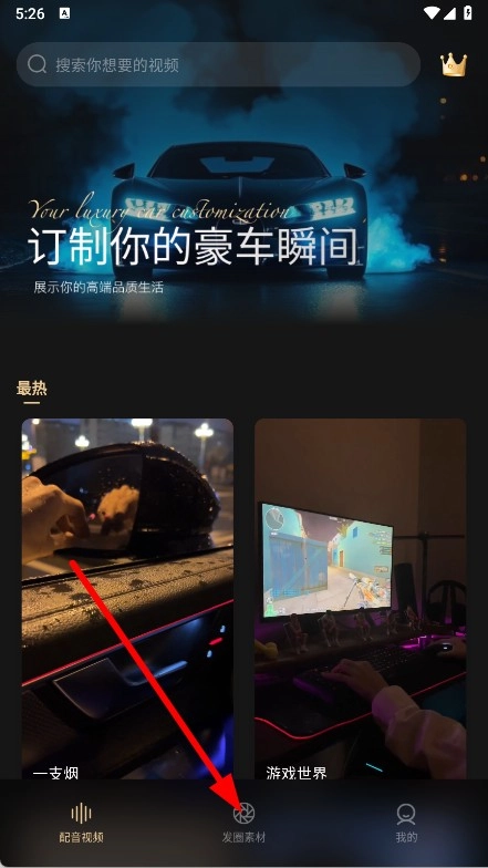 登录之后,找到底部导航栏中的发圈素材选项并点击,即可进入素材浏览页面。