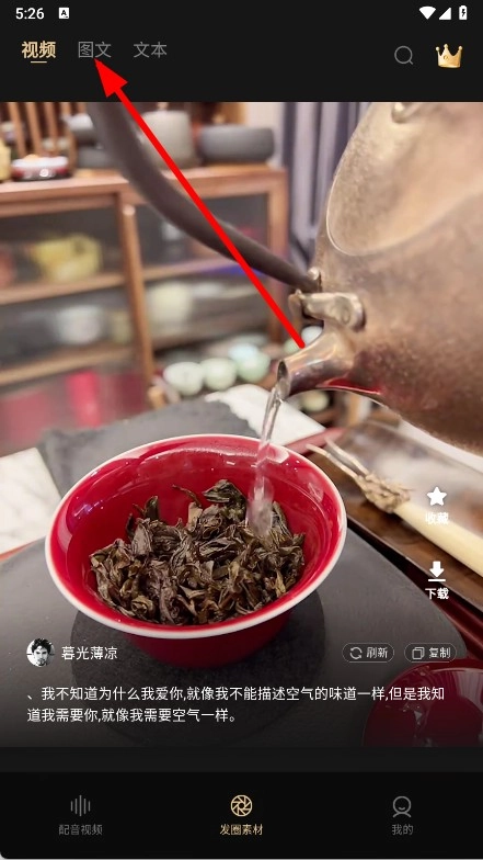 在发圈素材页面的顶部位置,找到并点击图文分类标签,即可切换至图文素材的展示列表。