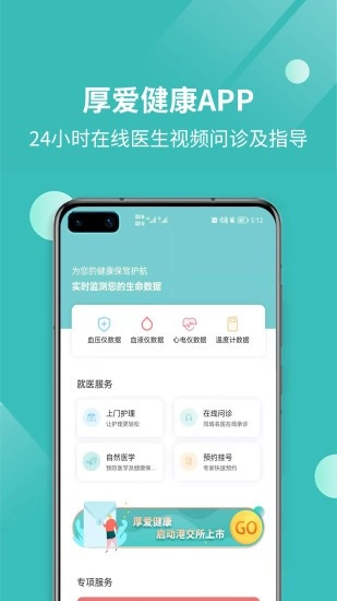 注册登录:并安装厚爱健康,注册账号并登录。