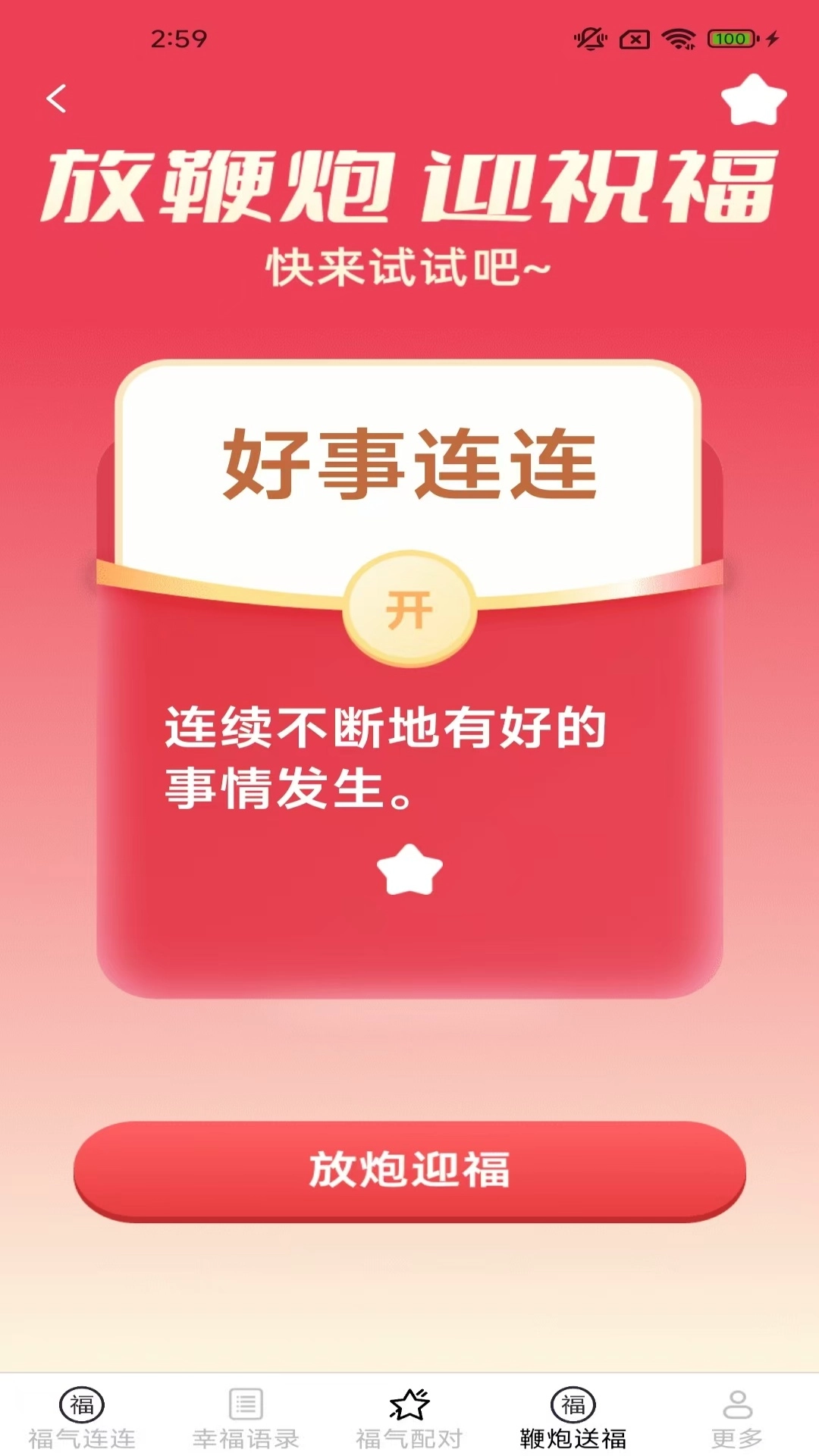 【鞭炮送福】轻触屏幕,即可让您无论何时何地都能体验到节日的热闹氛围。