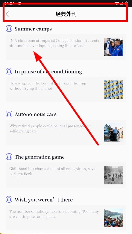 进入经典外刊列表后,选择目标外刊文章并点击。