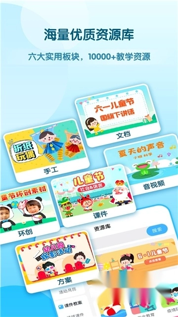 幼师贝壳,用专业资源为幼师减负,以趣味启蒙让孩子成长!多元体系课程:幼师贝壳App依据小、中、大各年龄段幼儿的发展特性,打造了1000+高质量互动课件,覆盖幼儿园常见活动主题,还配备安全教育、24节气、幼小衔接等特色课程体系,紧密跟进热点动态,持续更新内容,全方位满足教师五大领域的教学需求;2、海量电子素材:平台汇聚了海量高清优质图谱,以及环创手工、纸面教具、调查表、海报、奖状、手指操、动画、古诗等丰富素材,助力教师轻松高效备课;3、轻松获取资源:教师可通过关键热词随时进行搜索,一秒即可获取与主题相关的各类资源;4、多端实时共享:各类资源课件能够在电脑端、手机端、电视端实现数据同步,方便教师随时随地查看课件内容,多端协作更加便捷;5、家园共育工具:借助“小程序+微信群”的模式,为教师和家长提供通知接龙、相册共享等全场景服务,有效提升家园信息沟通的效率。