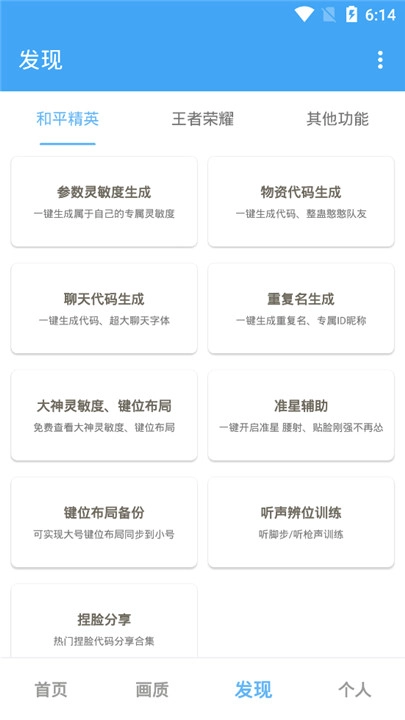 在和平精英模块中,玩家能够对参数灵敏度、物资代码、聊天代码等项目进行调整。