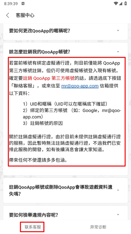 进入后点击"该怎么注销我的qoo账号";