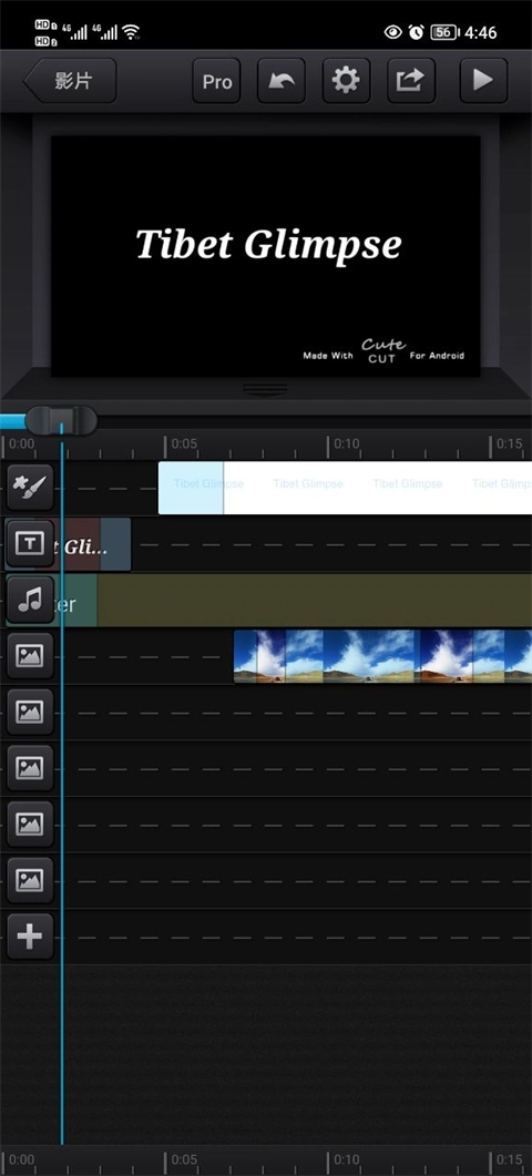 cutecut中文版支持同时向电影项目中添加多达六种不同类型的媒体,包括视频、照片(可来自相册或相机)、自画、文本、音乐和语音。