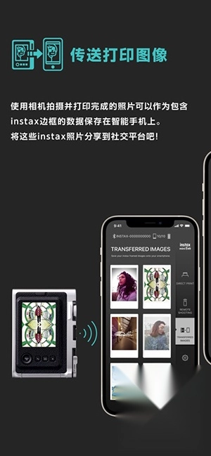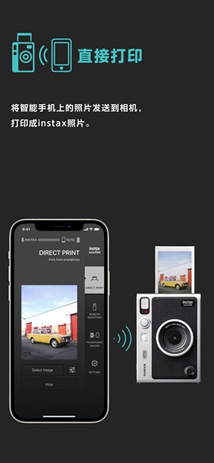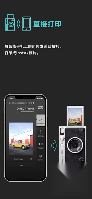 1、连接相机:这款功能是专门为instax mini Evo相机打造的,能够让手机和相机之间实现无缝衔接。