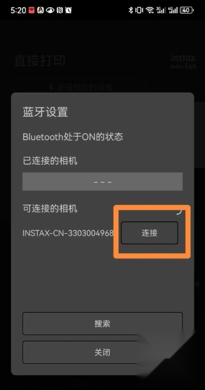 请先确认instax mini Evo已通过蓝牙连接至instax mini Evo智慧型手机应用程式。
