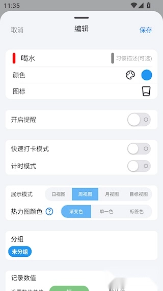 设置习惯的相关内容,像提醒、分组这类,都配置好之后,点击保存就能完成整个设置流程。