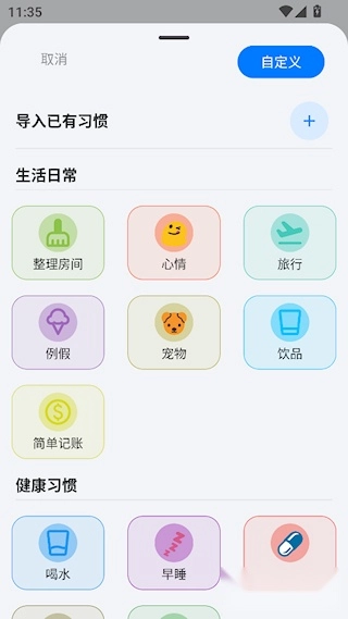 自定义习惯类型
