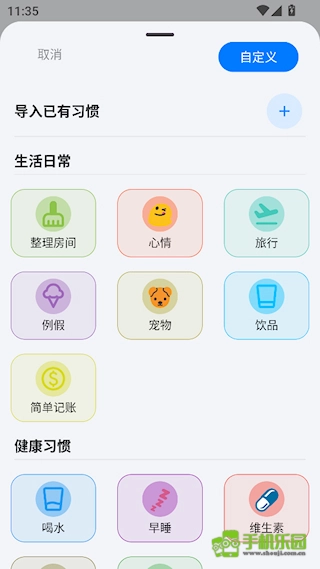 从来列表里选择一种习惯,也可以自定义习惯
