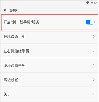 打开划一划手势,点击进入高级设置中。