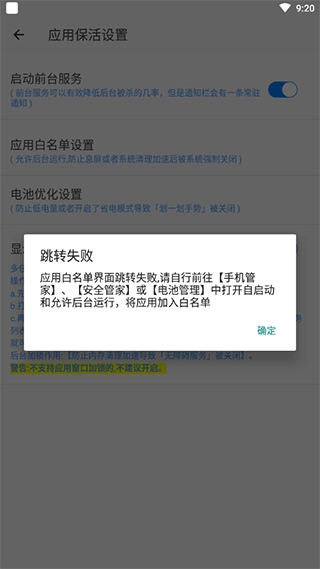- 应用保活设置: