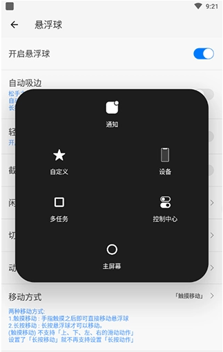 要是想在桌面上也能使用划一划的手势,你可以通过开启悬浮球来实现这个设置。
