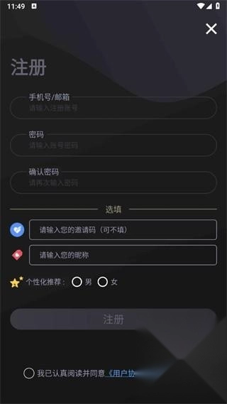 最后点击后进入注册页面,输入手机号/邮箱、密码、昵称等信息,再点击【注册】按钮即可完成操作。