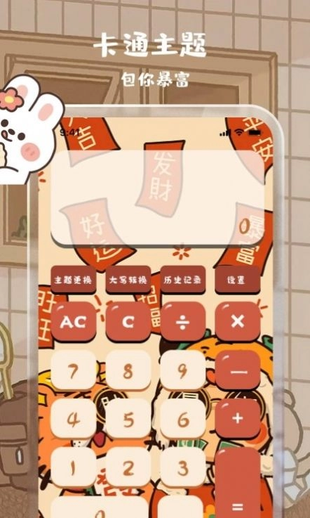 提供了各种可爱的贴纸和背景,可以尽情地发挥创意,定制出自己独一无二的计算器。