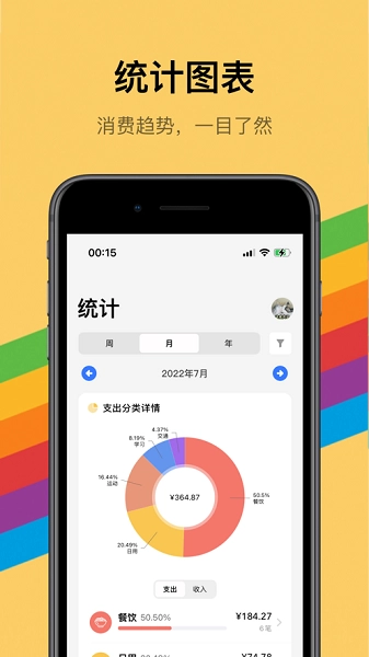 - 消费/收入细致分类,一目了然;