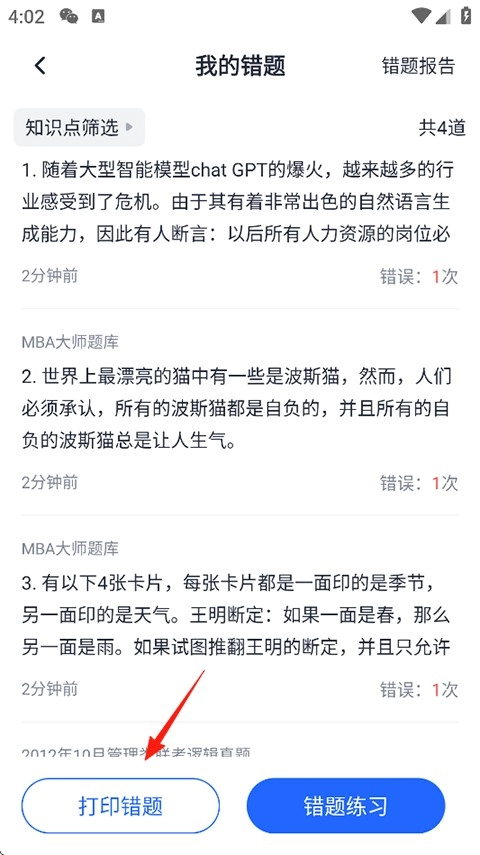 打开MBA大师,点击题库-我的错题;