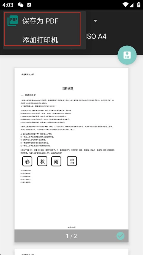 点击左上角,选择保存为PDF格式,或者添加打印机后直接打印。