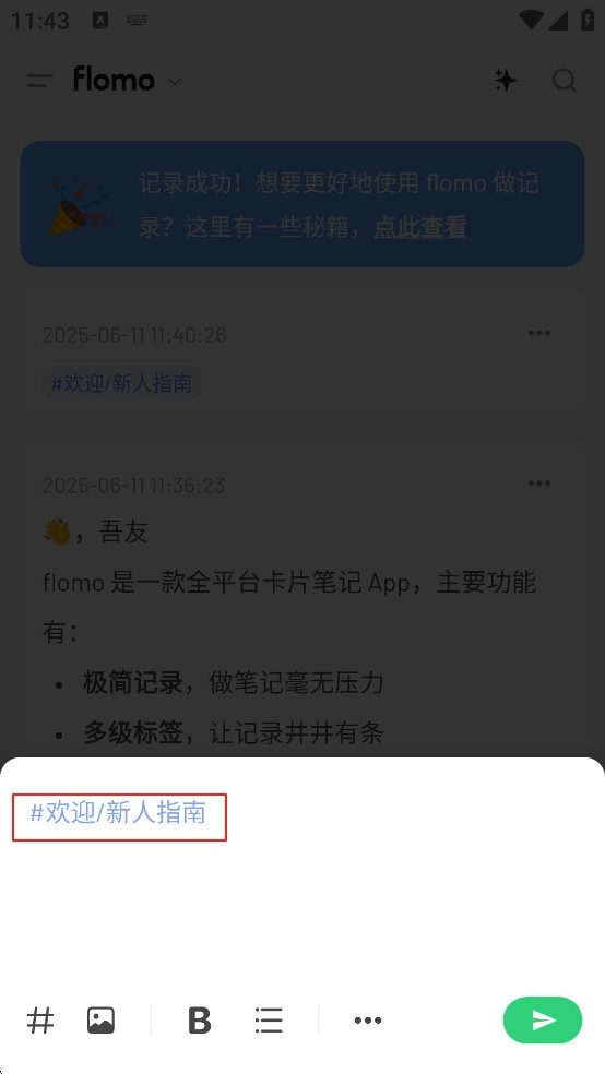 录音结束后,flomo会自动把你说的内容转换成文字。之后你可以在这个文字基础上进行修改和优化,记录好内容后再给它加上标签。