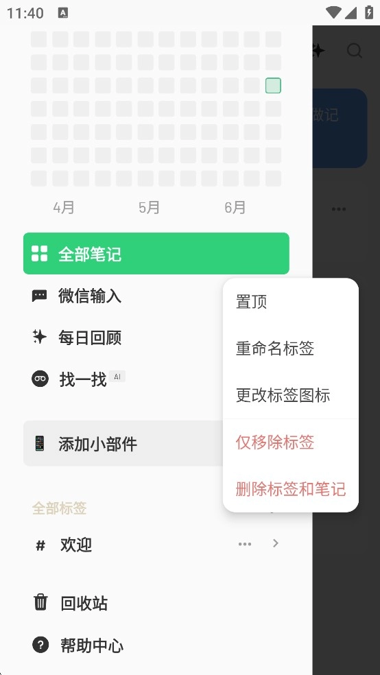 若需删除或修改标签,只需将光标移至对应标签处,点击其右侧的「···」按钮,随后选择「重命名」或「删除标签和笔记」选项即可完成操作。