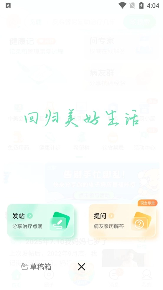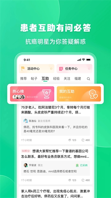 新增互助板块,汇聚病友间真实互助问答,解答康复疑问,对接医疗资源