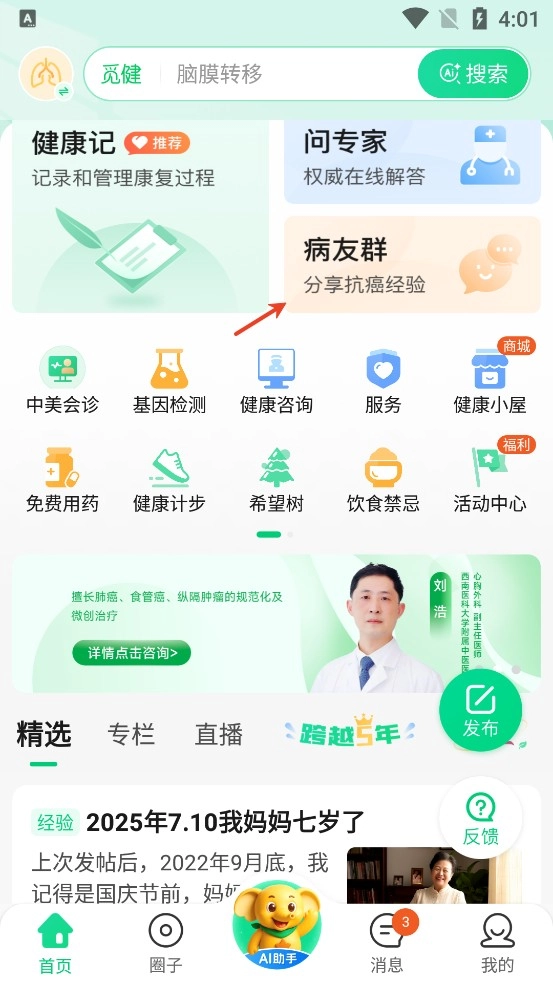 为你提供好友圈子,在线进入圈子与病友沟通交流;