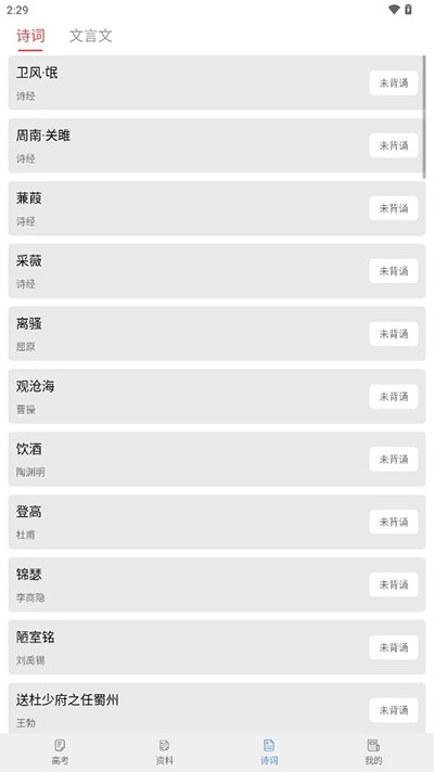 语文科目可以背诵诗歌,文言文,有记录可查。