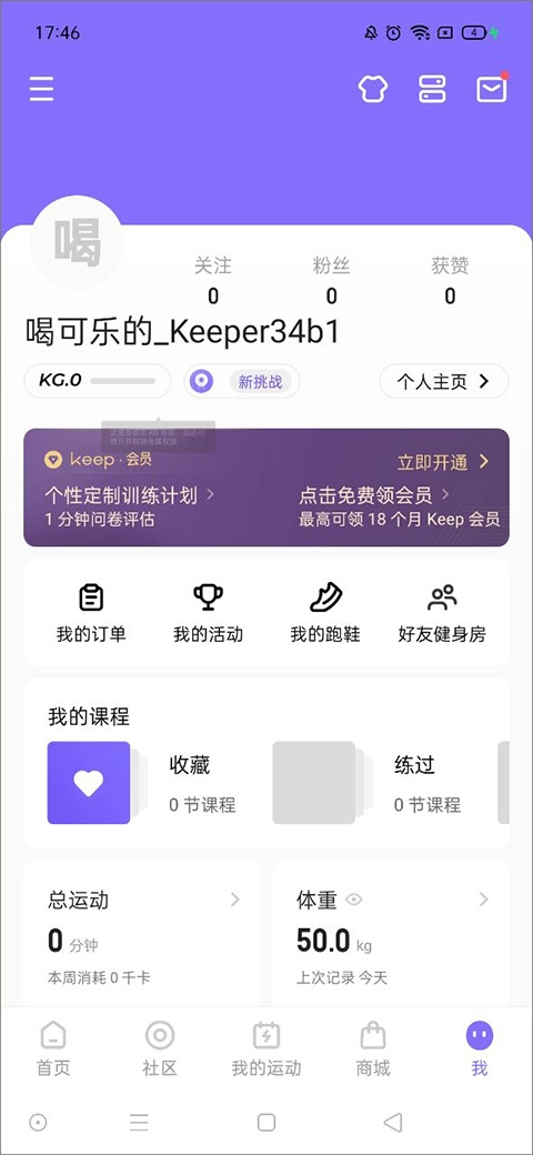 首先,我们在Keep主页的最下方找到【我的】按钮并点击,这样就能进入【我的】页面了。