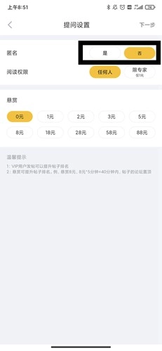 首先我们再次进入论坛,依照之前的步骤执行发帖操作——点击右上角的“发帖”按钮,随后进入发帖设置界面。在这里能看到各项详细的设置选项:比如阅读权限,若选择“仅专家可见”,就能精准对接更专业的人群;下方的悬赏功能可吸引更多用户积极为我们解答疑问;另外,最上方还有匿名发帖的设置项,点击“是”,我们就能以不显示个人昵称的方式发布帖子了。